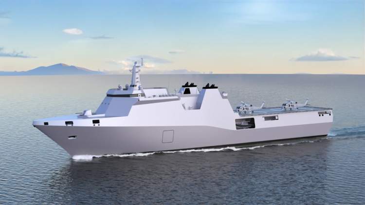Multi-Role Support Ship (MRSS) is a stealth amphibious assault and multi-purpose support vessel. This ship is designed to embark, transport, and land units of a Rapid Deployment Force (RDF) battalion, along with their equipment and heavy and light vehicles, for expeditionary warfare missions. Additionally, it provides logistical support to naval platforms at sea under heavy sea and weather conditions during peace and wartime.