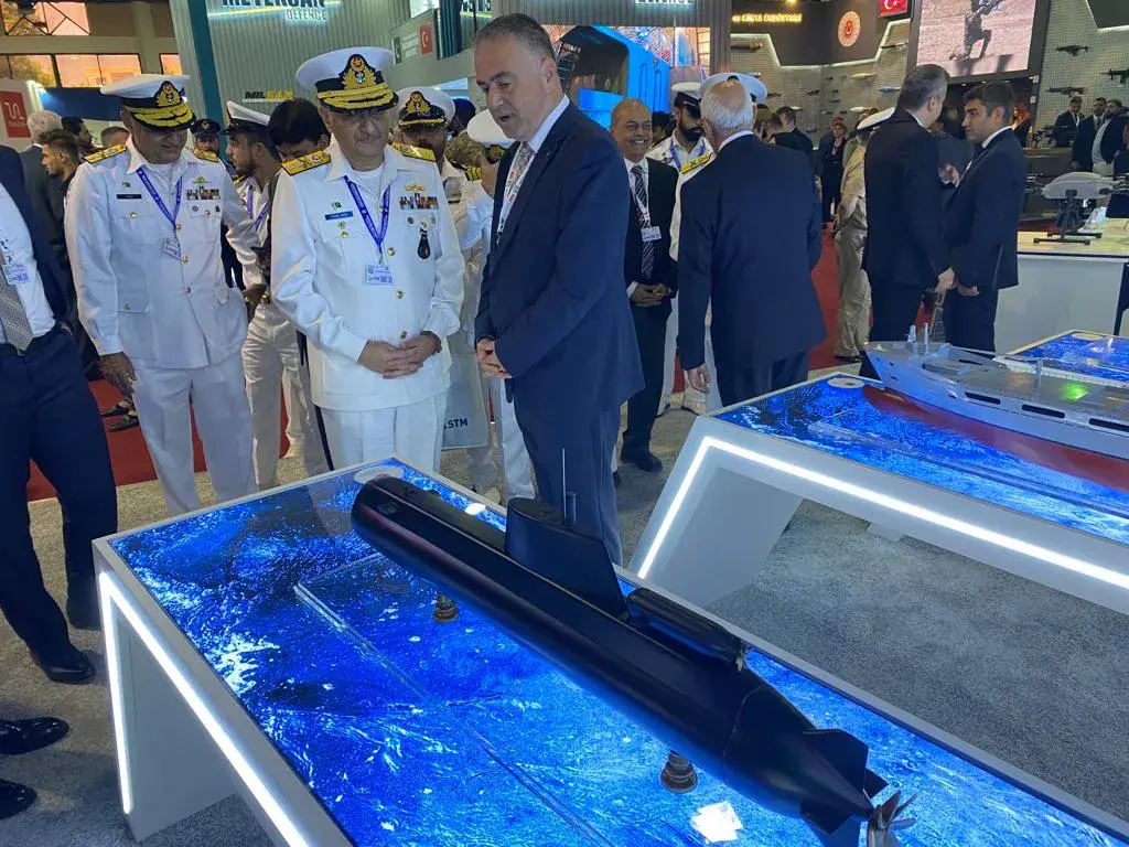 STM is displaying mock-ups of Türkiye's first national corvette project – the Ada Class MILGEM, Türkiye's first national frigate the İstif (I) Class Frigate, STM-MPAC Multi Purpose Attack Craft, Pakistan Navy Fleet Tanker (PNFT) and is presenting its STM500 submarine to the participants.