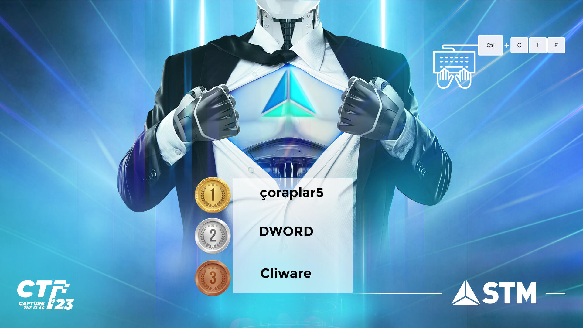 CTF’te yarışarak derece elde eden katılımcılar toplamda 225 bin TL’lik ödülün sahibi oldu. Yarışmada birinci olan takım “çoraplar5” 100 bin TL, ikinci olan, “DWORD” 75 bin TL ve üçüncü olan “Cliware” takımı ise 50 bin TL para ödülü kazandı. CTF’e katılarak derece başarısı gösteren yarışmacılar, STM’de staj veya kariyer imkanları da yakalıyor.