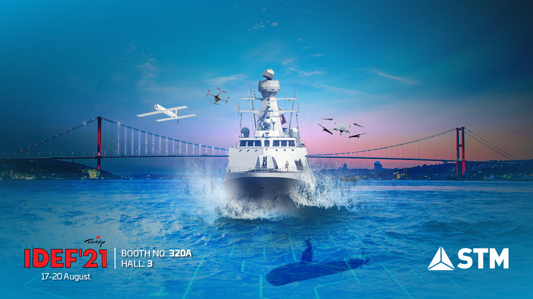 Askeri denizcilik alanında Türkiye’yi yurt dışında başarıyla temsil eden ve Türkiye’nin ilk milli fırkateyni TCG İSTANBUL’un ana yüklencisi olan STM, sahip olduğu milli mühendislik kabiliyetleri ve geliştirmiş olduğu askeri denizcilik platformları projeleri ile IDEF’21 de yerini alacak. STM bu alanda, MİLGEM, İ-Sınıfı Fırkateyn, Lojistik Destek Gemisi, TS1700 Denizaltı, Açık Deniz Karakol Gemisi (OPV) ürünlerini ve yeni konsept tasarımlarını fuarda sergileyecek.