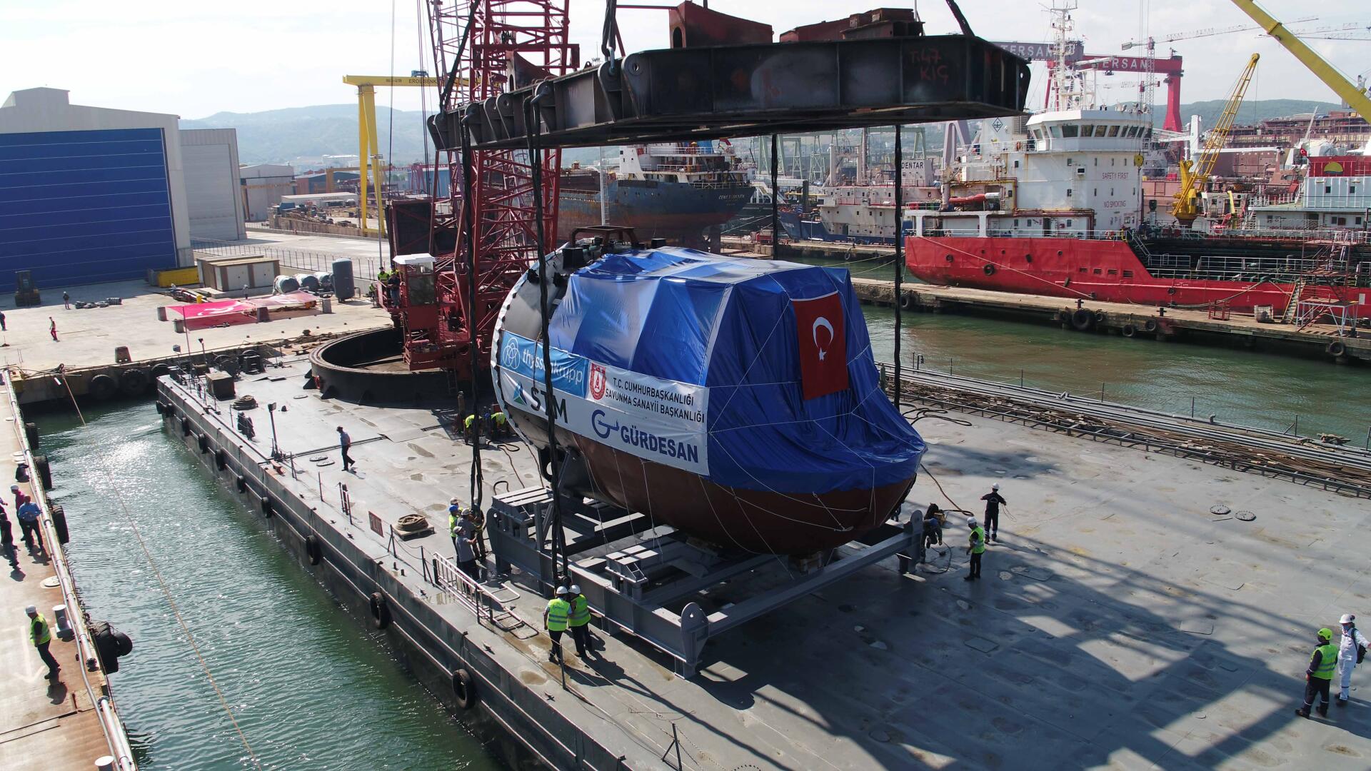 Dünyanın en aktif donanmalarından Türk Deniz Kuvvetleri Komutanlığı için, T.C. Cumhurbaşkanlığı Savunma Sanayii Başkanlığı (SSB) tarafından başlatılan Yeni Tip Denizaltı Projesi’nde (YTDP) kritik bir aşama daha tamamlandı. Dünyada sayılı ülkelerin üretimini yapabildiği, denizaltı torpido kovanlarının yer aldığı baş kısım (Section 50), ilk kez Türkiye’de, yerli ve milli imkanlarla, STM mühendisliği ve koordinasyonunda, Gürdesan Tersanesi’nde üretildi. Reis sınıfı denizaltılar için üretilen ilk Section 50, Yalova’da bulunan Gürdesan Tersanesi’nden, deniz yolu ile Gölcük Tersane Komutanlığı’na bugün (13 Eylül 2021) teslim edildi. Milli imkanlarla üretilen ve teslim edilen ilk Section 50, YTDP’nin 3. denizaltısı TCG MURATREİS’e entegre edilecek.