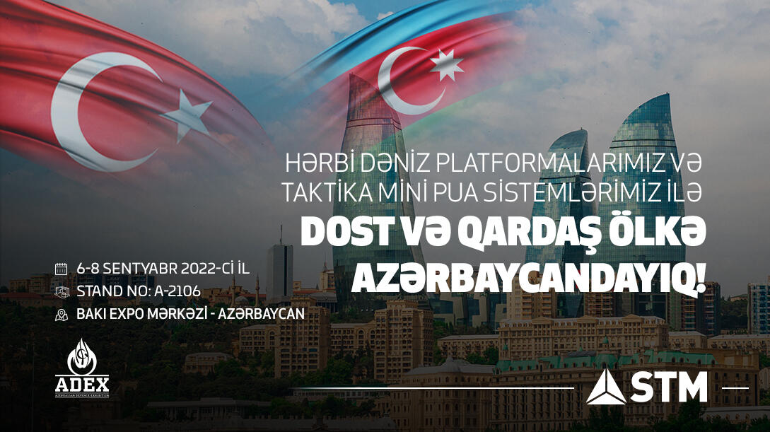 Güney Kafkasya ve Orta Asya bölgesinin önemli savunma fuarlarından, Azerbaycan Uluslararası Savunma Sanayi Fuarı ADEX 2022, 6-8 Eylül 2022 tarihlerinde Bakü Expo Center'de gerçekleşecek. STM bu yıl 4’üncüsü yapılacak ADEX fuarında, küçük boyutlu milli denizaltı STM500’ü ilk kez sergileyecek. Türkiye’nin ilk milli fırkateyni olma özelliğine sahip İstif (İ) Sınıfı MİLGEM, STM-MPAC Hücumbot; döner kanatlı vurucu İHA sistemi KARGU, sabit kanatlı vurucu İHA sistemi ALPAGU ve gözcü İHA sistemi TOGAN katılımcıların beğenisine sunulacak.